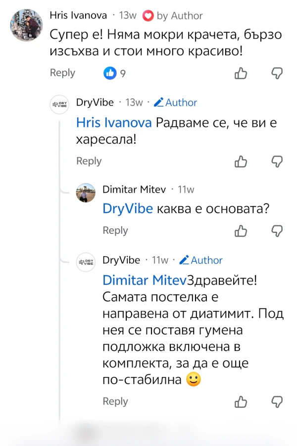 Да, постелките DryVibe са изключително хигиенични, заради материала от който са направени. Краткото време за което изсъхват, както и антимикробните свойства на диатомичния камък осигуряват високо ниво на чистота.